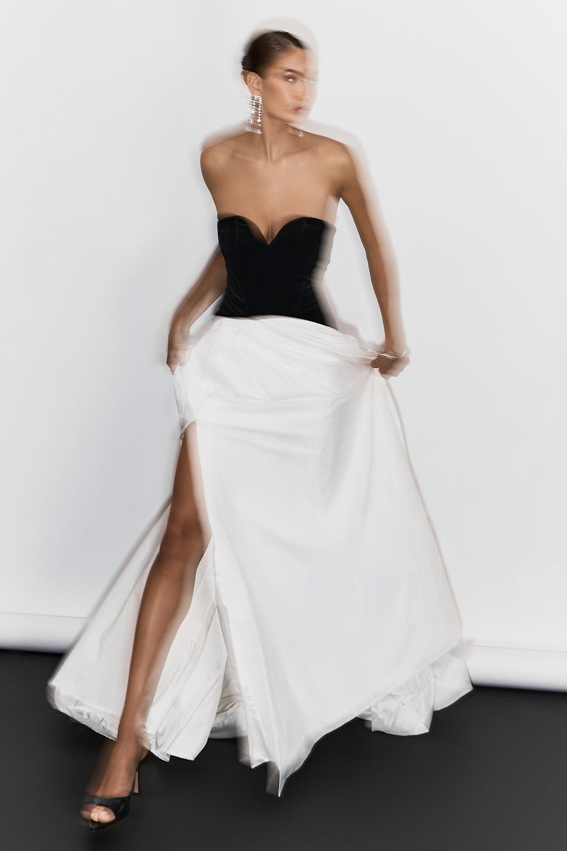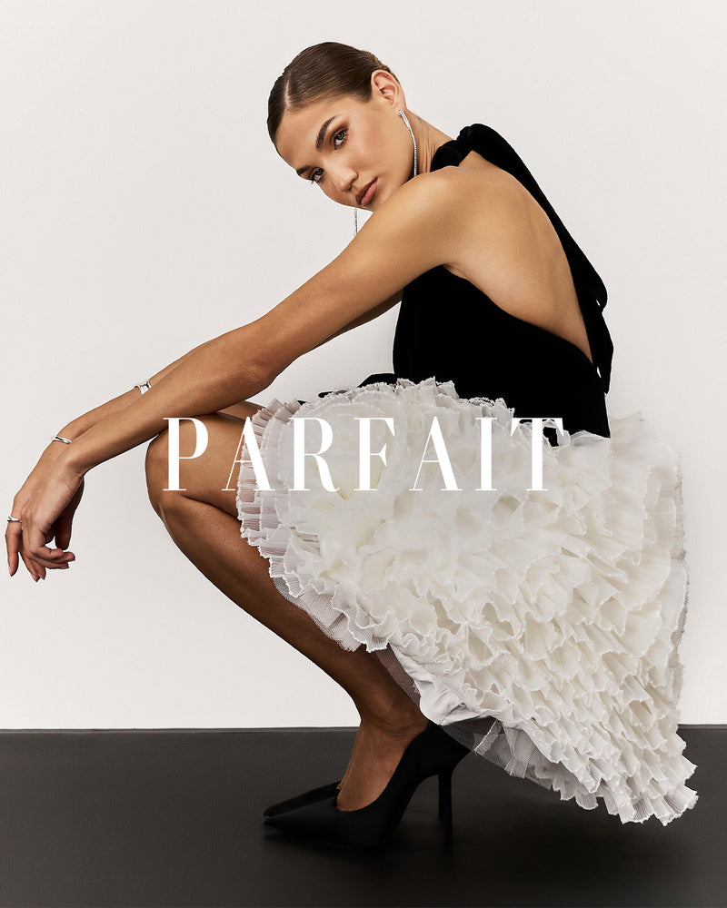 Parfait is een elegante symfonie van volume, licht en fantasie. Gemaakt van luxe stoffen, met prachtig gevormde hourglass maxi-jurken, opvallende schouderdetails en verenafwerkingen voor een dramatisch effect. Ontworpen voor de meest bijzondere momenten in het leven, tilt Parfait gelegenheidskleding naar een hoger niveau.