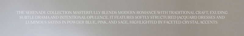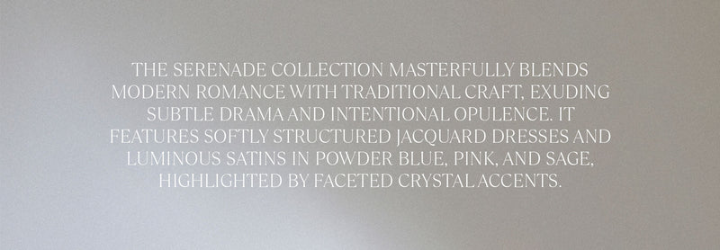 De Serenade-collectie viert subtiele dramatiek en doordachte weelde en is een toonbeeld van moderne romantiek — een elegante samenkomst van vrouwelijkheid en traditioneel vakmanschap