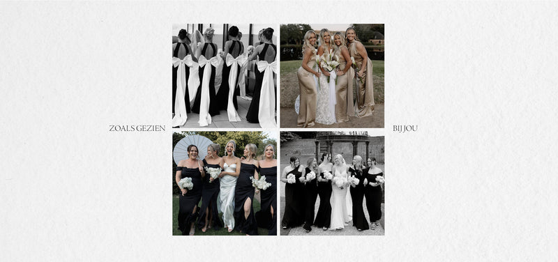 Van bijpassende tinten tot mix & match stijlen: ontdek de items die jouw bruids party zal koesteren. Denk aan monochrome jurken die elk figuur flatteren tot draperende modellen die prachtig mee bewegen, onze jurken zijn ontworpen om jouw grote dag moeiteloos aan te vullen.